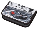 - Przestronny, jednokomorowy tornister z motywem samochodu.