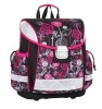 - Przestronny, jednokomorowy tornister z motywem kwiatowym.