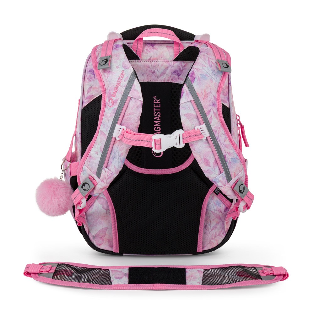 Mocne i anatomicznie ukształtowane szelki mają długość 36 cm i szerokość 7 cm. Idealnie dopasowują się do pleców i ramion dziecka dzięki skośnym przeszyciom. Długość pasków należy dopasować do wzrostu ucznia za pomocą plastikowych klamer. Wewnętrzna strona pokryta jest mocną i delikatną w dotyku siatką.