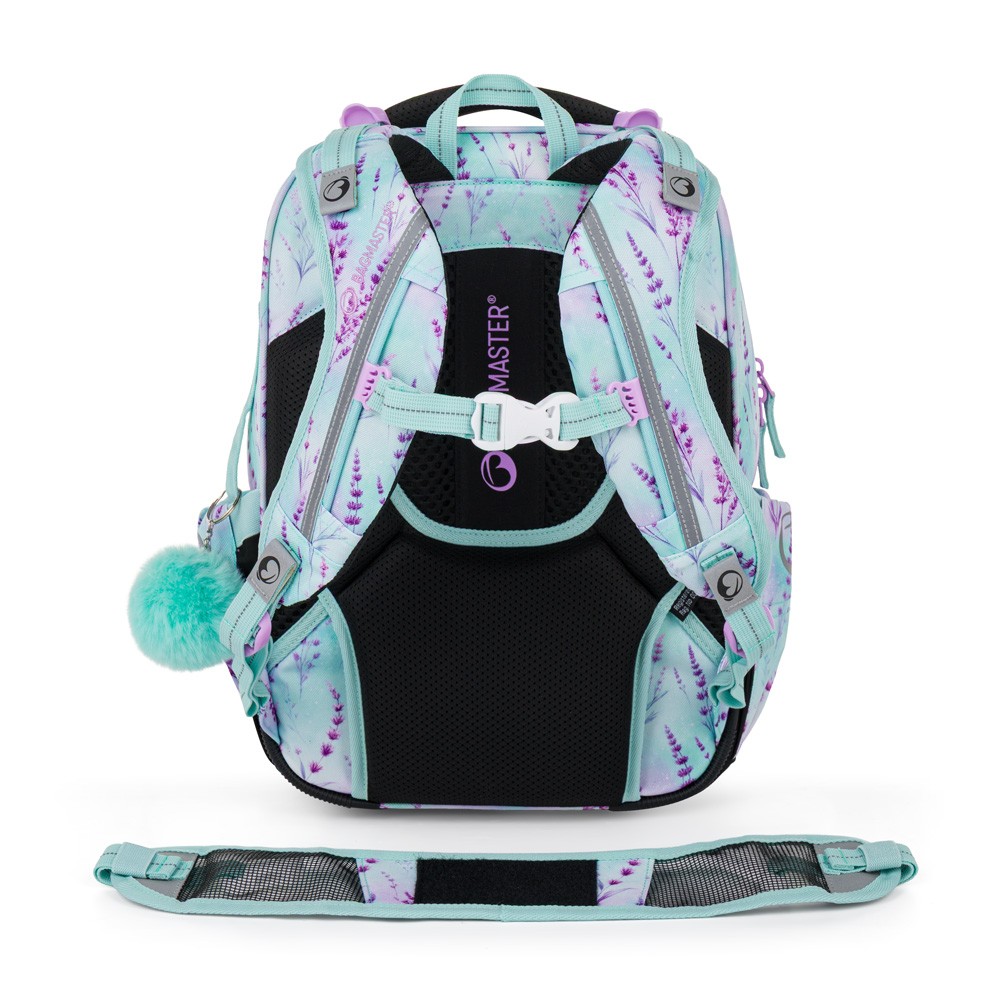 Mocne i anatomicznie ukształtowane szelki mają długość 36 cm i szerokość 7 cm. Idealnie dopasowują się do pleców i ramion dziecka dzięki skośnym przeszyciom. Długość pasków należy dopasować do wzrostu ucznia za pomocą plastikowych klamer. Wewnętrzna strona pokryta jest mocną i delikatną w dotyku siatką.