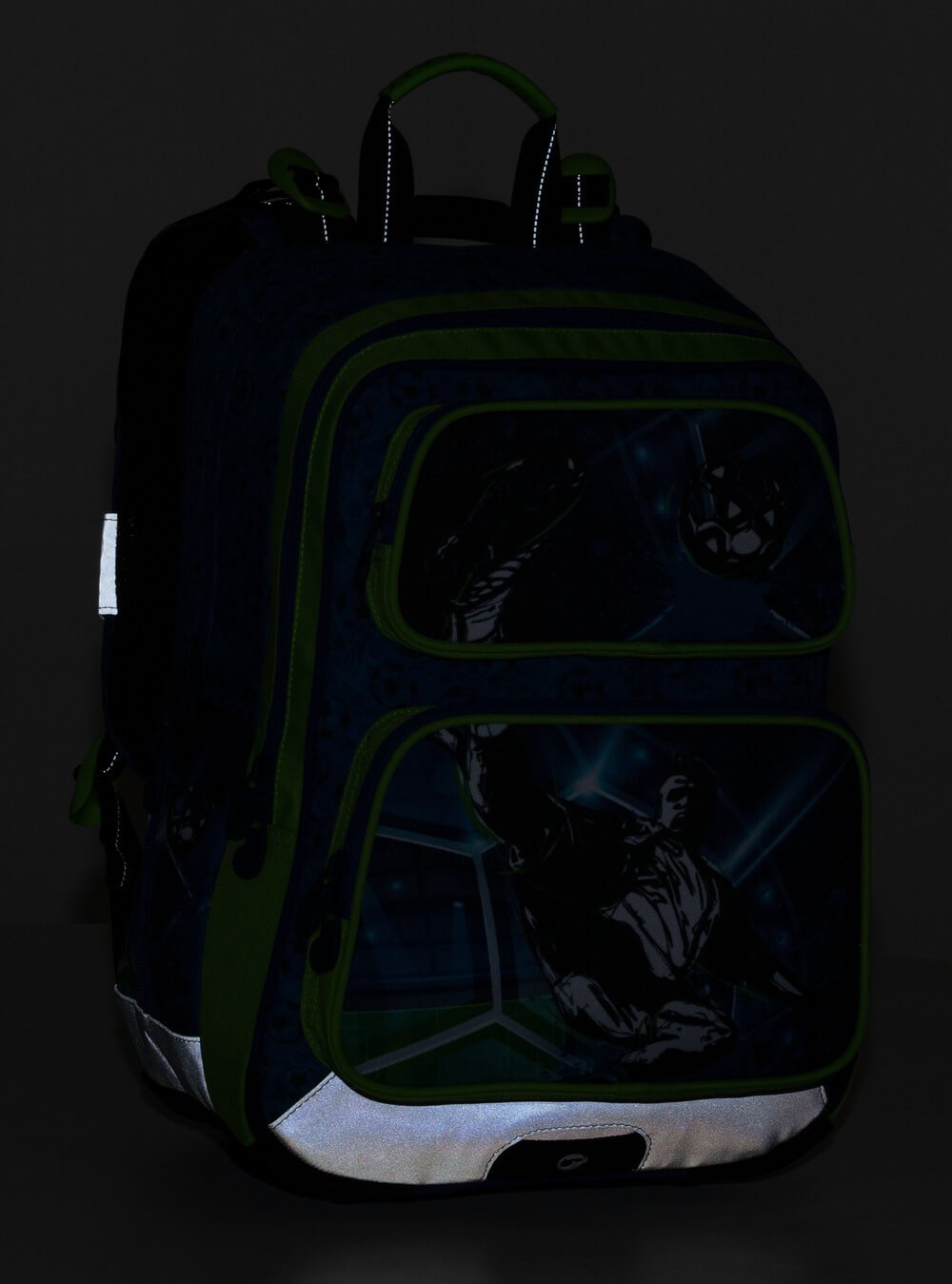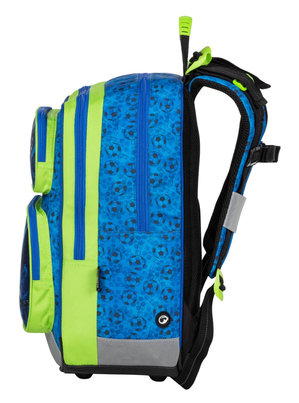 - Materiały odblaskowe z każdej strony plecaka