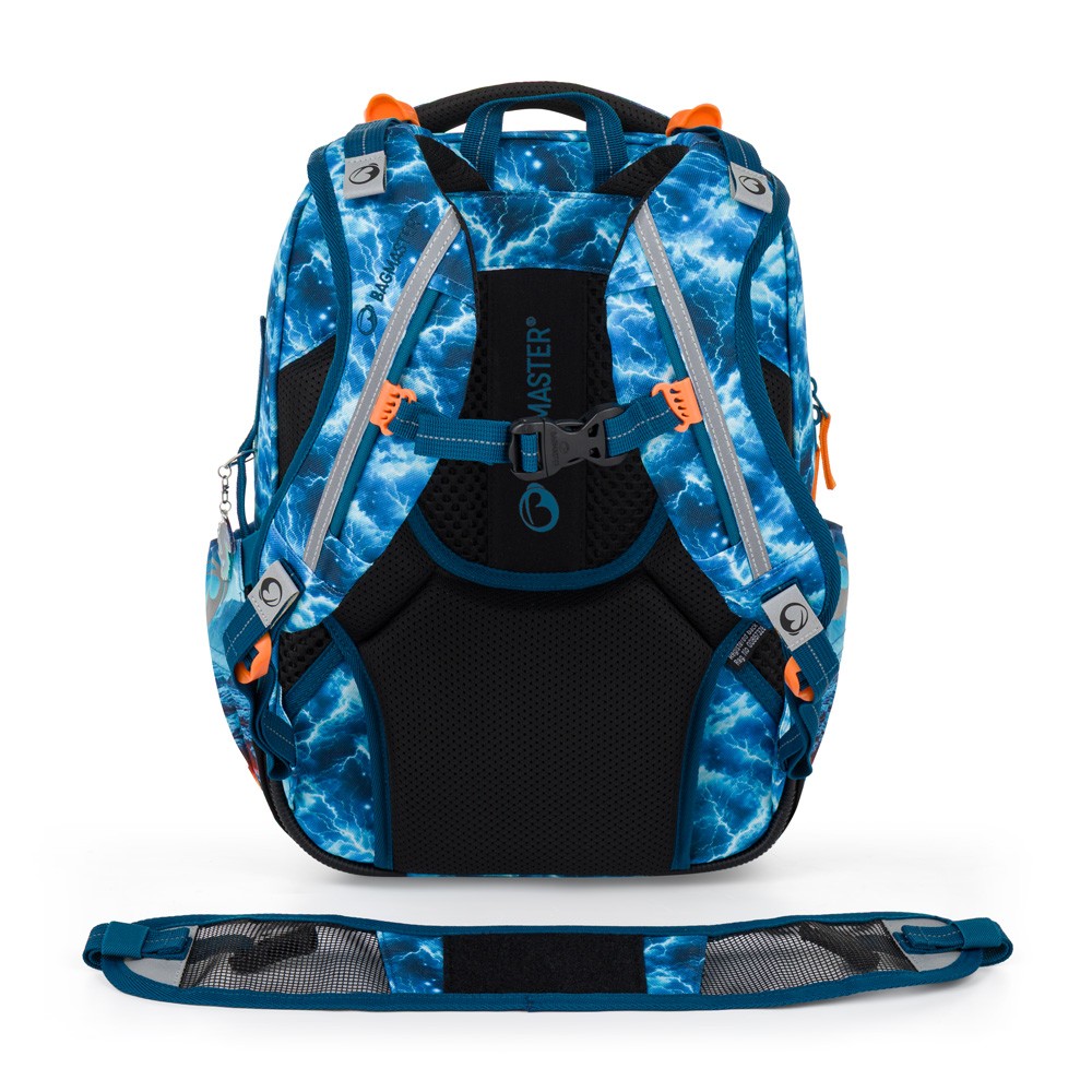 Mocne i anatomicznie ukształtowane szelki mają długość 36 cm i szerokość 7 cm. Idealnie dopasowują się do pleców i ramion dziecka dzięki skośnym przeszyciom. Długość pasków należy dopasować do wzrostu ucznia za pomocą plastikowych klamer. Wewnętrzna strona pokryta jest mocną i delikatną w dotyku siatką.
