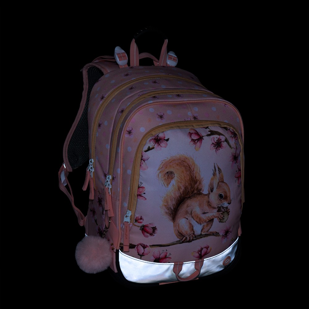 Ładny, wyjątkowo lekki trzykomorowy plecak szkolny dla pierwszoklasistów z wiewiórka. Zakochają się w nim zarówno dzieci, jak i rodzice. Bezpieczny system pleców, elementami odblaskowymi, delikatną siatką na plecach, organizerem, z zawieszką-maskotką na klucze i wieloma innymi funkcjami. Zestaw dla małej księżniczki obejmuje oprócz plecaka także piórnik i materiałowy worek.