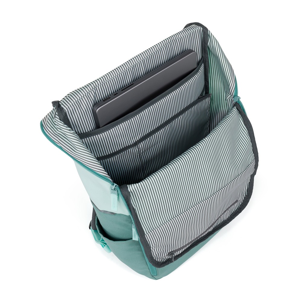 - Plecak jest idealny do podróżowania. Dzięki regulowanej klamrze w górnej części jego pojemność można łatwo zwiększyć – wystarczy poluzować klamrę, spakować zawartość i ponownie ją zapiąć. Plecak dostosowuje się do tego, ile rzeczy chcesz mieć ze sobą.