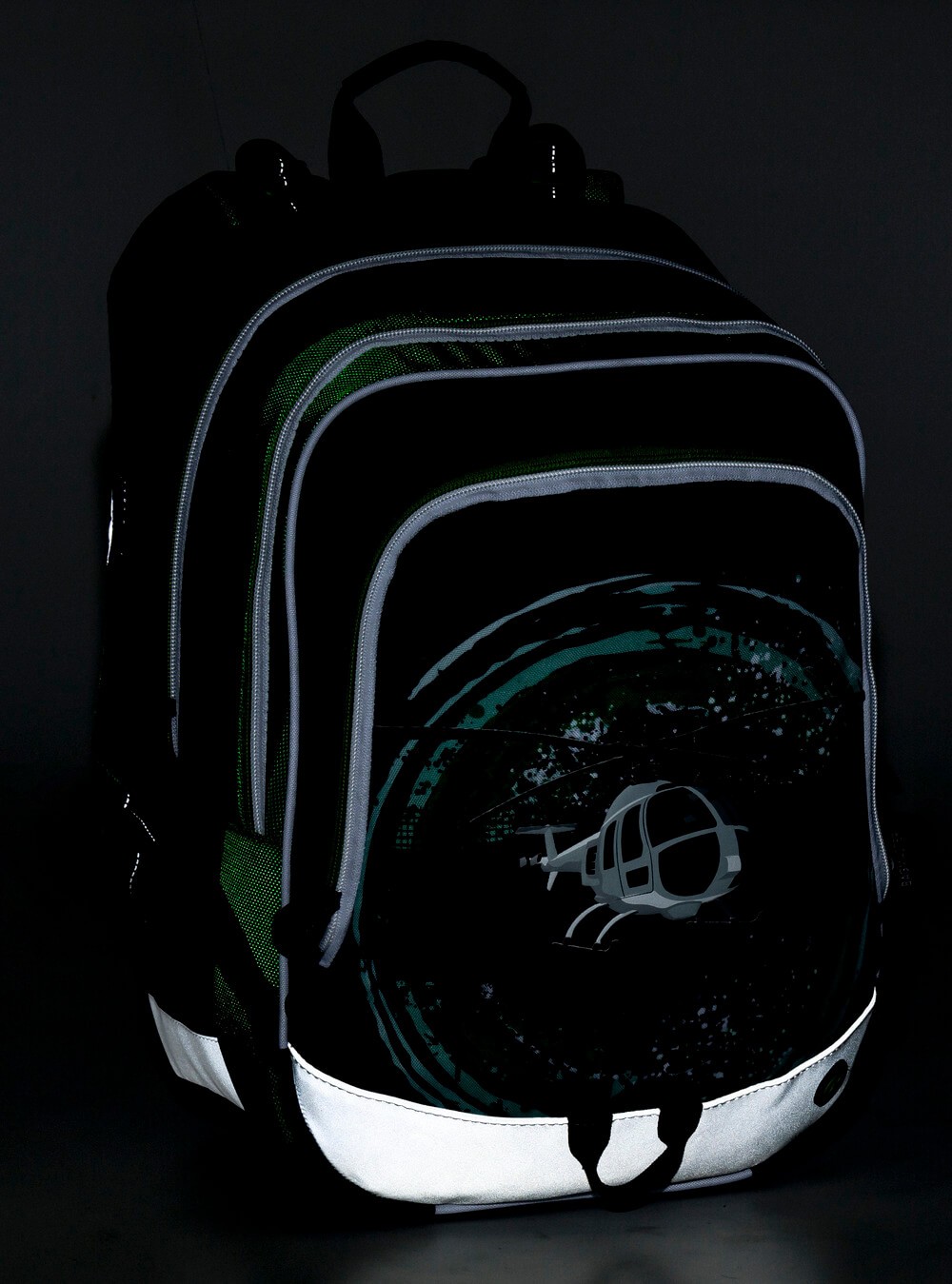 Z każdej strony plecaka jak i na szelkach rozmieszczone są odblaski, aby zwiększyć widoczność i bezpieczeństwo małego użytkownika w drodze do szkoły.