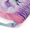 Kolorowy materiałowy worek na obuwie zamienne lub strój gimnastyczny z motywem konia i elementami odblaskowymi dla bezpieczeństwa. Szerokie szelki nie wrzynają się w ramiona, a ich długość można łatwo regulować za pomocą plastikowej klamry.
