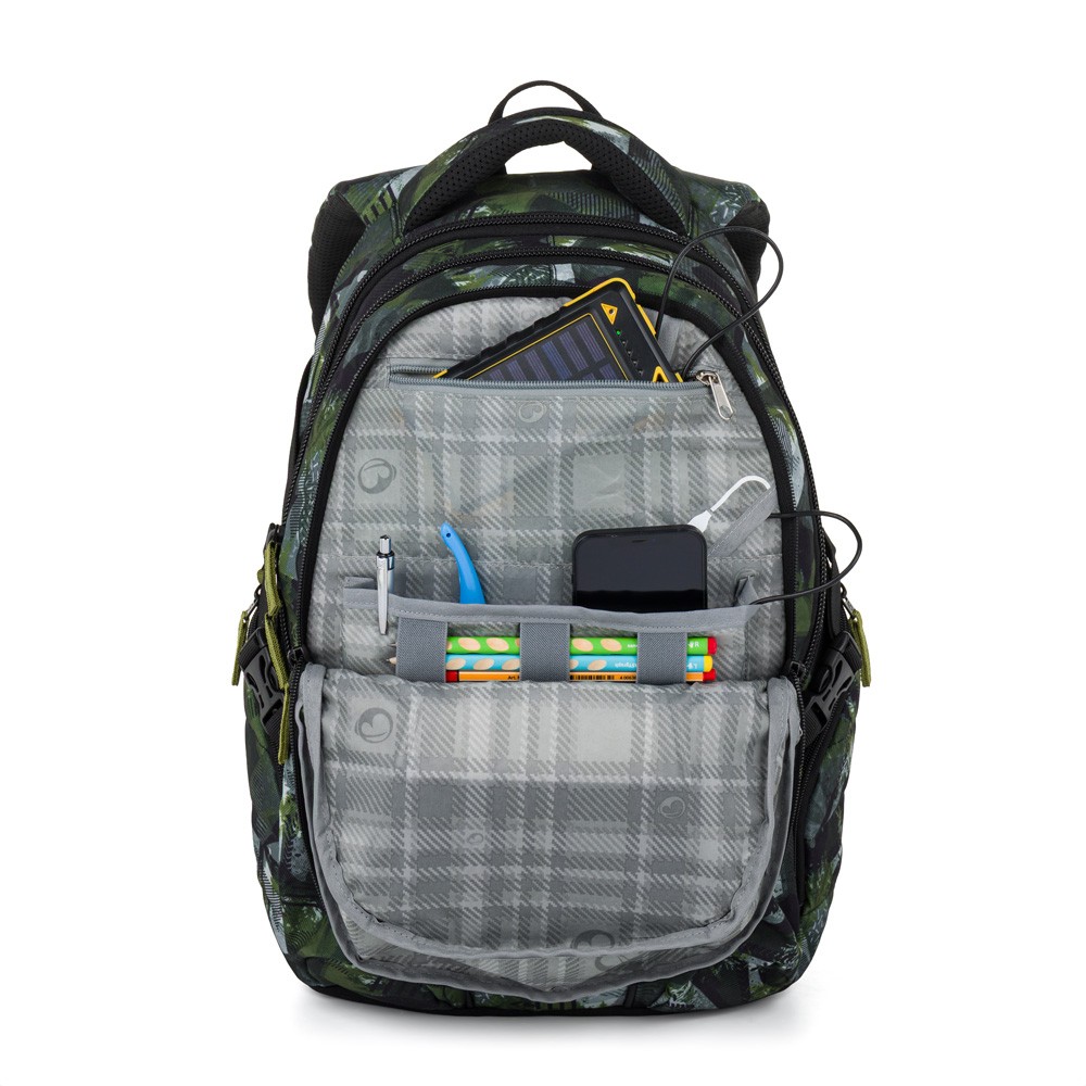 Zielono-szary plecak szkolny dla uczniów od klasy 4, którzy potrzebują więcej miejsca na podręczniki i przybory. Posiada trzy obszerne komory z wyściełaną przegrodą na laptopa 15" oraz dużą ilością mniejszych kieszeni na różne drobiazgi. W bocznych…